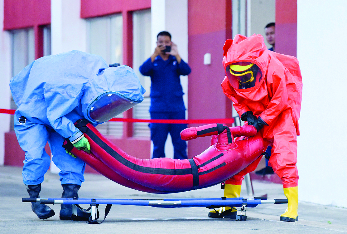 比賽共設(shè)置六個(gè)科目,包括3000米跑、單杠引體向上、雙杠臂屈伸、300米物資接力賽、徒手著重型防化服救人操、移動(dòng)炮出水打靶操。比賽過(guò)程中,隊(duì)員們展現(xiàn)出了高昂的斗志和頑強(qiáng)的精神,現(xiàn)場(chǎng)氣氛熱烈。特別是在徒手著重型防化服救人操項(xiàng)目中,密不透風(fēng)的重型防化服極大地限制了活動(dòng)能力,但是參賽隊(duì)員們的動(dòng)作仍然干凈利落,彼此默契配合,上演了一場(chǎng)場(chǎng)爭(zhēng)分奪秒的“合作救援戰(zhàn)”。