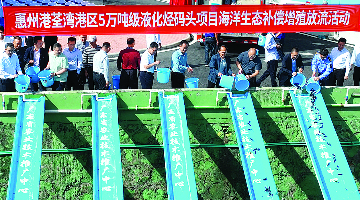 惠州日?qǐng)?bào)訊 (記者曾靜妍)12月15日,惠州港荃灣港區(qū)5萬(wàn)噸級(jí)液化烴碼頭項(xiàng)目增殖放流活動(dòng)在廣東省海洋漁業(yè)試驗(yàn)中心舉行。市港投集團(tuán)及相關(guān)下屬企業(yè)、市農(nóng)業(yè)農(nóng)村局、省海洋漁業(yè)試驗(yàn)中心、大亞灣水產(chǎn)資源省級(jí)自然保護(hù)區(qū)管理處、區(qū)社管局、中交四航局、中交廣航局、中鐵廣州局、中建安裝公司等單位干部職工和漁民代表參與活動(dòng)。本次增殖放流活動(dòng)共投放魚(yú)蝦苗670萬(wàn)尾。
