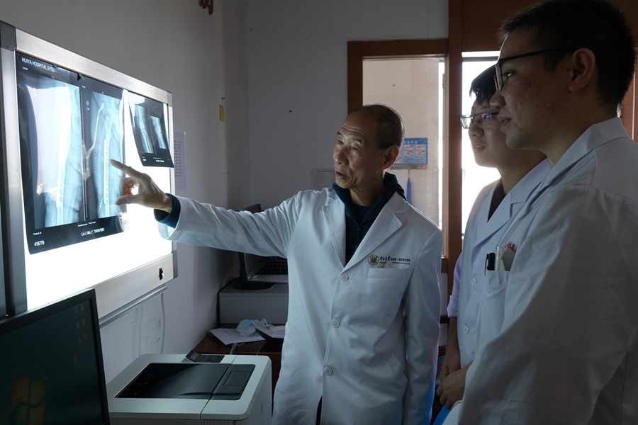 眼神清亮,行動矯健,78歲的楊忠漢從醫(yī)已整整54年。作為中山大學(xué)附屬第一醫(yī)院骨科關(guān)節(jié)外科的一名主任醫(yī)師,楊忠漢至今仍活躍在醫(yī)學(xué)專業(yè)領(lǐng)域,看病、做手術(shù)、授課、做研究。2023年12月,楊忠漢帶領(lǐng)惠亞醫(yī)院骨科團隊為73歲的外籍友人實施了右側(cè)全髖關(guān)節(jié)置換手術(shù),成功解決了困擾患者10余年的右髖部疼痛問題。“術(shù)后第二天就能下地鍛煉了,一周內(nèi)完全康復(fù)!痹撏饧讶速潎@不已。