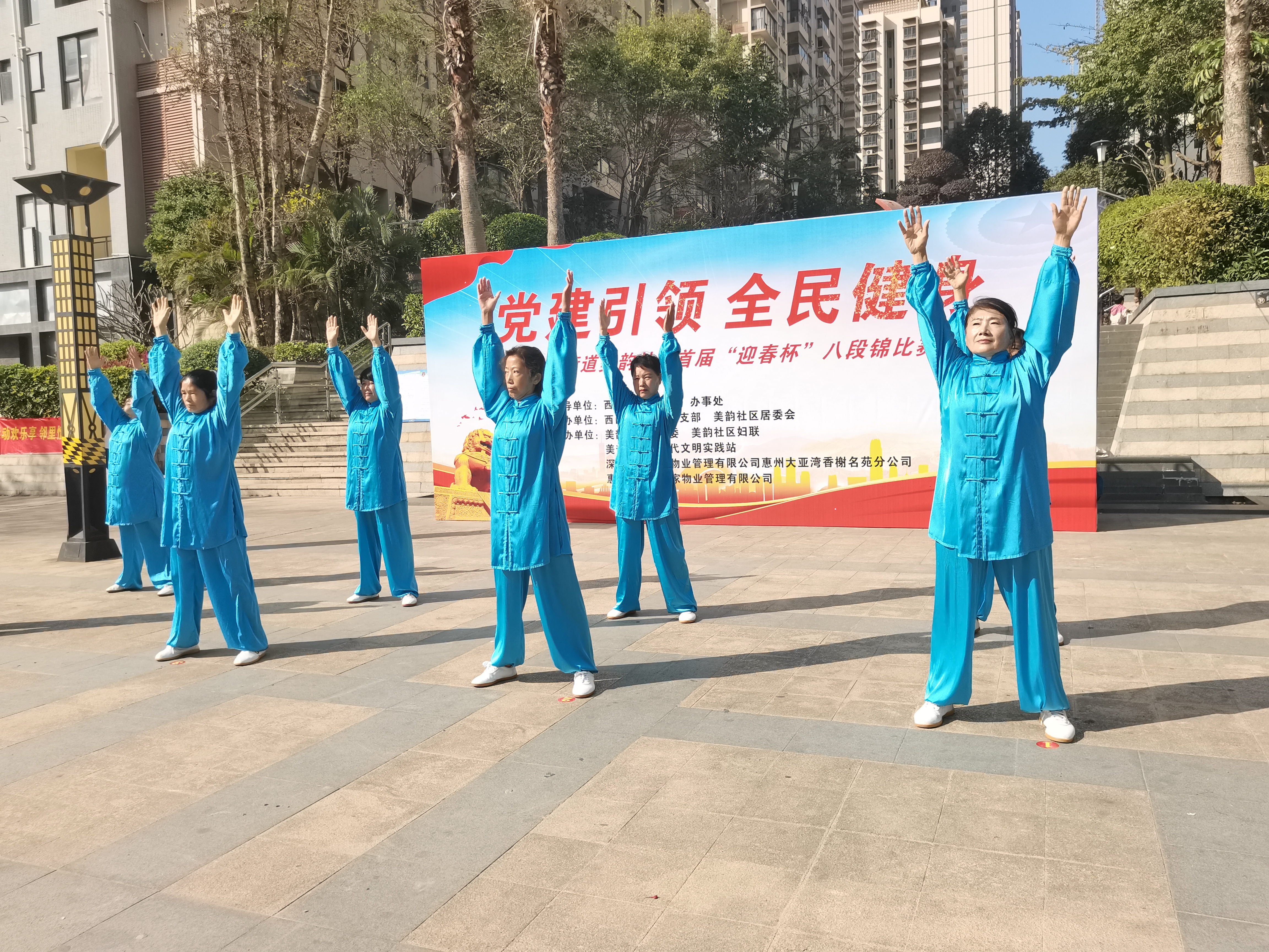 此次比賽由大亞灣西區(qū)街道美韻社區(qū)黨支部、美韻社區(qū)居民委員會主辦、大亞灣區(qū)武術協(xié)會承辦、美韻社區(qū)婦聯(lián)、美韻社區(qū)關工委、美韻社區(qū)新時代文明實踐站、香榭名苑物業(yè)公司、秋谷物業(yè)有限公司協(xié)辦。