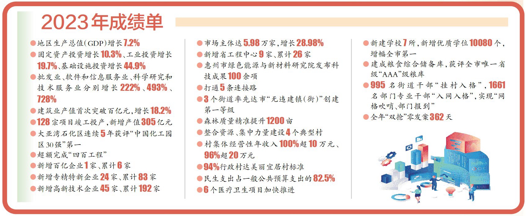 這一年,社會治理更加高效。貫徹總體國家安全觀,掃黑除惡斗爭常態(tài)化開展,全民反詐集中宣傳和專項打擊行動扎實開展,“和美網(wǎng)格”提質(zhì)增效;大亞灣開發(fā)區(qū)連續(xù)11年獲評惠州市平安建設(shè)(綜治工作)優(yōu)秀縣(區(qū));重大事故隱患專項排查整治2023行動深入推進,安全生產(chǎn)形勢平穩(wěn)有序;倉容3萬噸糧食綜合儲備庫竣工驗收,糧食安全保障更加有力。