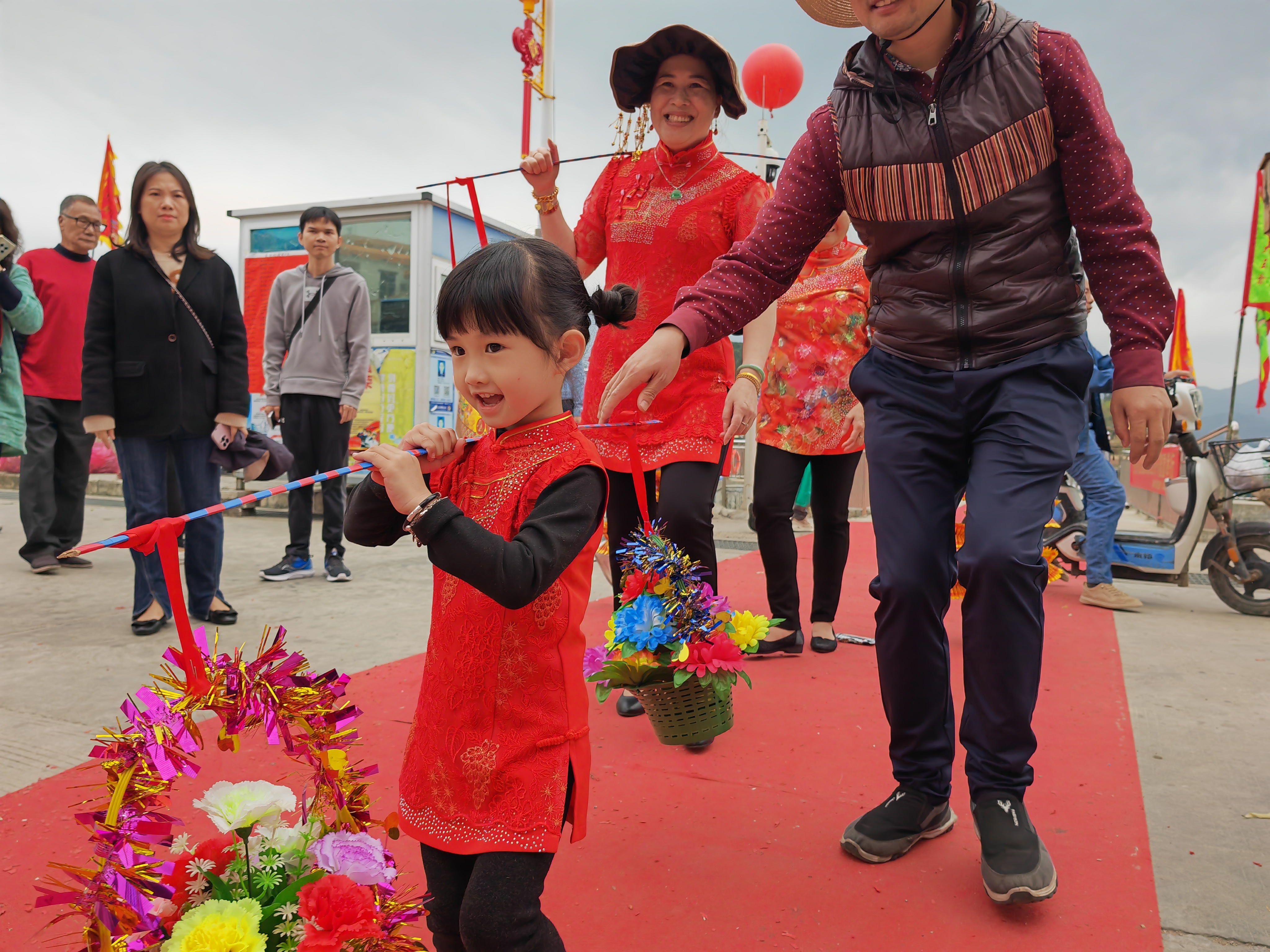 在巡游隊(duì)伍里,一位挑著花籃的小“漁女”吸引了大家的目光。5歲的蘇曉璇第一次跟著家人參加大王爺節(jié),她穿著新做的漁家服飾,扎著兩個(gè)小發(fā)髻,跟在隊(duì)伍后面,肩上的花籃上下晃動(dòng),很是可愛。“讓她從小就接觸我們的傳統(tǒng)民俗文化,對(duì)于她來說是一次難忘的體驗(yàn)!睍澡陌职痔K征兵說。