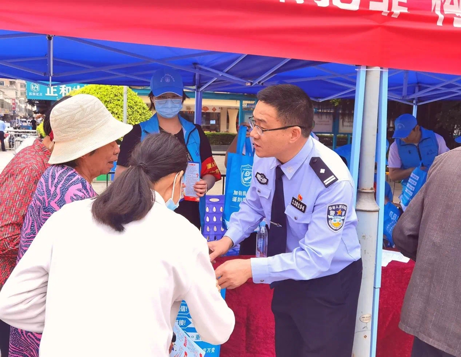 大亞灣公安向市民宣傳反詐知識。