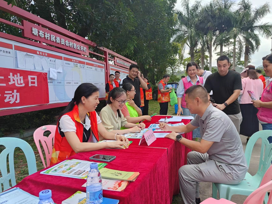 在西區(qū)塘布村委會廣場,政策宣傳區(qū)、政策咨詢臺前圍滿了熱情的村民。工作人員向村民宣傳自然資源有關政策,派發(fā)自然資源相關宣傳資料,并耐心解答群眾關心問題,進一步提高村民自然資源保護意識,推動形成“主動保護自然資源”的良好氛圍。