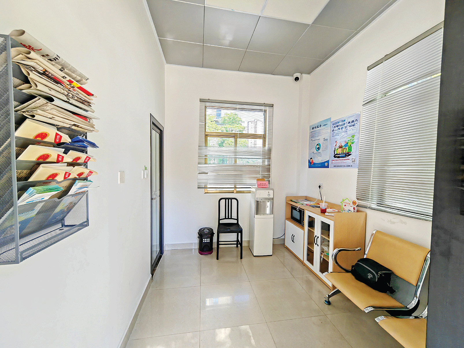 步入這間雖小卻“五臟俱全”的愛心驛站,一股清涼油然而生?照{(diào)輕拂,驅(qū)散了夏日的炎熱。室內(nèi)功能齊全,配有空調(diào)、休息座椅、飲用水、手機充電、雨傘等一系列便民設(shè)施。更令人驚喜的是,里面還設(shè)有衛(wèi)生間與淋浴間,全方位滿足戶外勞動者“渴了有水喝、累了能歇腳、手機可充電、飯菜能加熱、雨天有傘借、熱天能避暑”的多樣化需求。