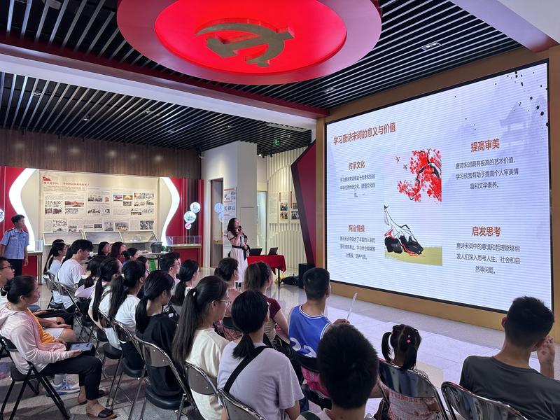 在大亞灣新時(shí)代文明實(shí)踐中心,講師們將唐詩宋詞中的經(jīng)典篇目作為教學(xué)藍(lán)本,妙趣橫生地為大家初步勾勒出唐詩宋詞的發(fā)展歷程,講解了其主要流派的藝術(shù)特色與風(fēng)貌。緊接著,在場居民群眾品味了杜甫《春望》沉郁頓挫的憂國之情,更在宋詞的海洋中遨游,感受了李清照《聲聲慢》的哀婉纏綿與辛棄疾《破陣子》的壯志豪情。詩詞之美,令人陶醉,大家在詩詞中細(xì)細(xì)品味其獨(dú)特魅力。