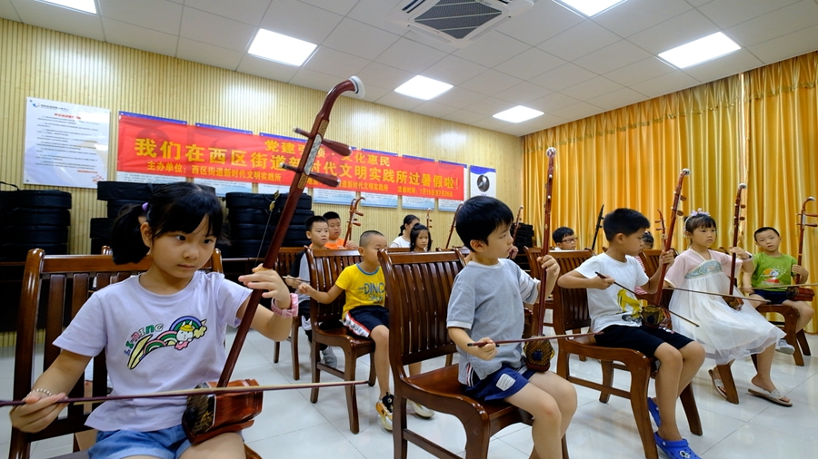 西區(qū)街道綜合文化站公益暑假班開設(shè)二胡培訓(xùn)課程。