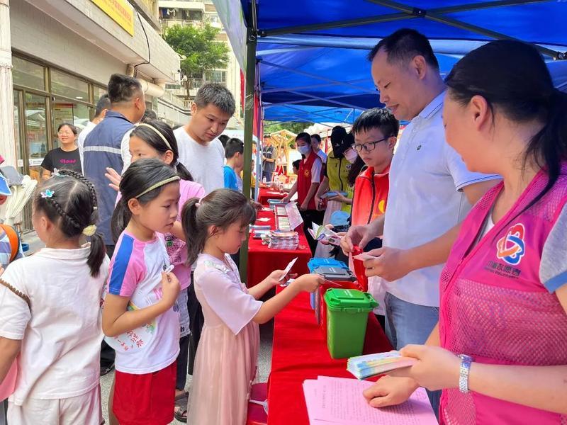 鄰里節(jié)上社區(qū)工作人員向居民宣傳垃圾分類知識。 惠州日報記者曾靜妍 攝