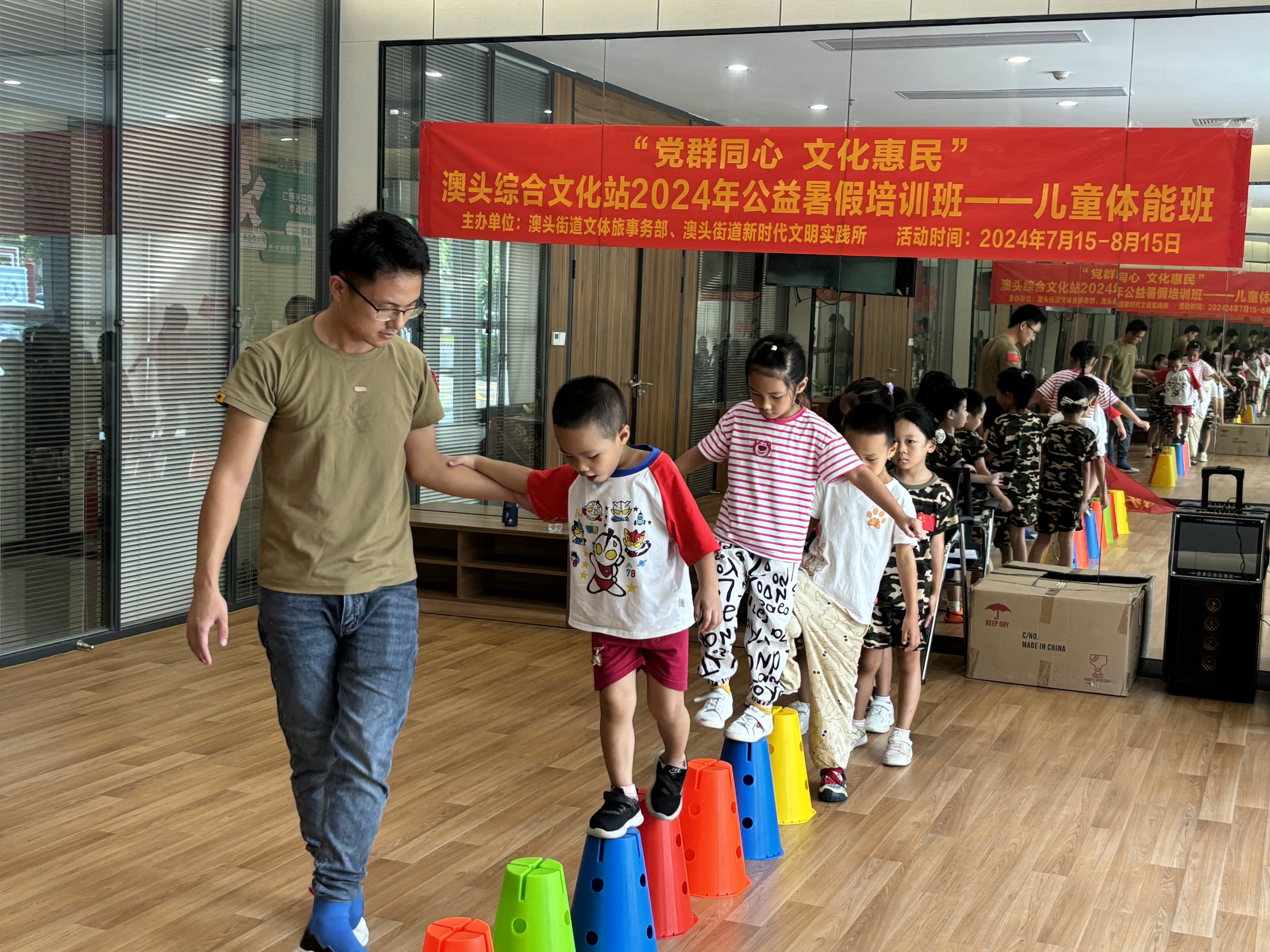 馮志亮平時忙于教學任務,業(yè)余時間也沒有閑下來。近段時間,除了堅持在廣場上教小朋友跳廣場舞外,他還在街道社區(qū)組織的暑期公益培訓班上教授體能訓練課程?鐧谂、繞樁跑、前滾翻、走獨木橋……每一項運動,馮志亮都親自示范,講解動作要領(lǐng)和注意事項,他還置辦了適合幼兒訓練的器材,增加了訓練的趣味性,讓孩子們在闖關(guān)過程中增強體能。