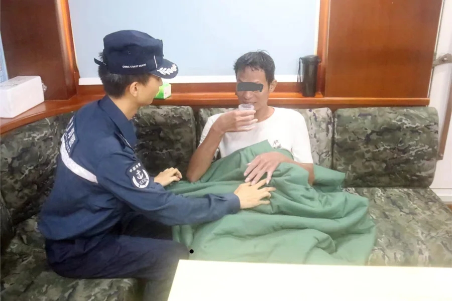 當(dāng)時(shí),人在海中漂泊一天一夜,被救起時(shí)身體已極度虛弱,嘴唇發(fā)紫、不斷顫抖。海警執(zhí)法員及時(shí)為其裹上被褥防止失溫,對(duì)其傷口進(jìn)行清理,并提供了水和食物,及時(shí)補(bǔ)充能量。