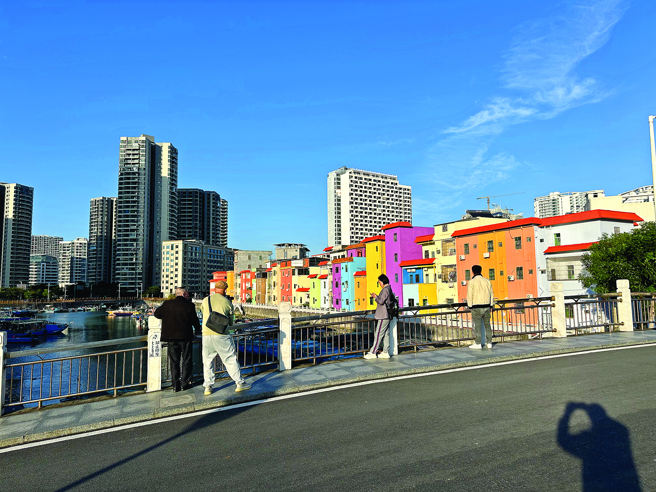 傍晚時分,當(dāng)夕陽的余暉灑在這片彩色的房屋上,整個包禾塘仿佛被鍍上了一層金色。游客們沿著這條街道散步,欣賞著包禾塘里整齊停泊的漁船,看著鷺鳥在水面上自由飛翔,心情格外舒暢。他們紛紛停下腳步,在霞新橋上拍照打卡,記錄美好的瞬間。