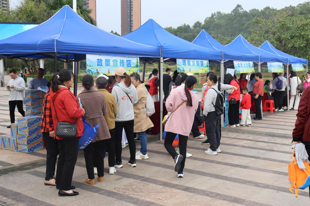 活動現(xiàn)場設(shè)置有各種展區(qū):政策宣傳區(qū),由“回家”黨員向居民群眾宣傳禁毒反詐、環(huán)境保護、民生政策等;惠民服務(wù)區(qū),志愿者們?yōu)榫用裉峁┝x剪、口腔護理等服務(wù);慈善倡導(dǎo)區(qū)公示社區(qū)基金發(fā)展情況,倡導(dǎo)公眾積極參與慈善。