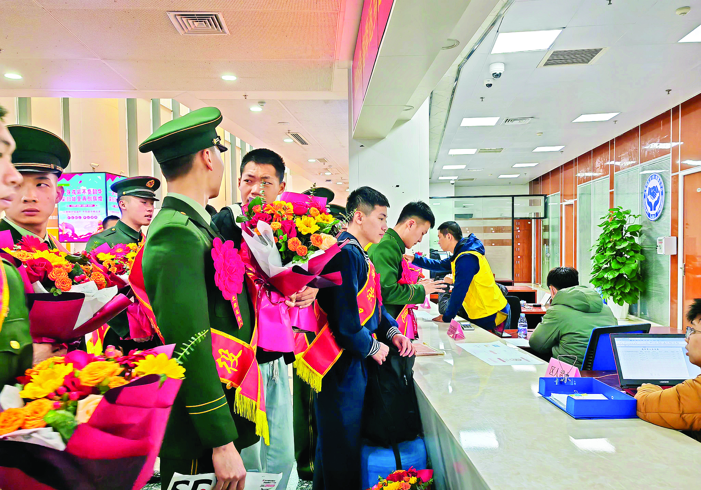 為更好地服務(wù)退役軍人,區(qū)社會事務(wù)管理局在政務(wù)服務(wù)大廳開設(shè)春季返鄉(xiāng)退役士兵“一站式”報到服務(wù)窗口,為大家提供包括落戶、預(yù)備役登記、社保接續(xù)、黨(團)組織關(guān)系轉(zhuǎn)移等報到服務(wù)事項,讓退役軍人感受到家鄉(xiāng)的溫暖和關(guān)懷。