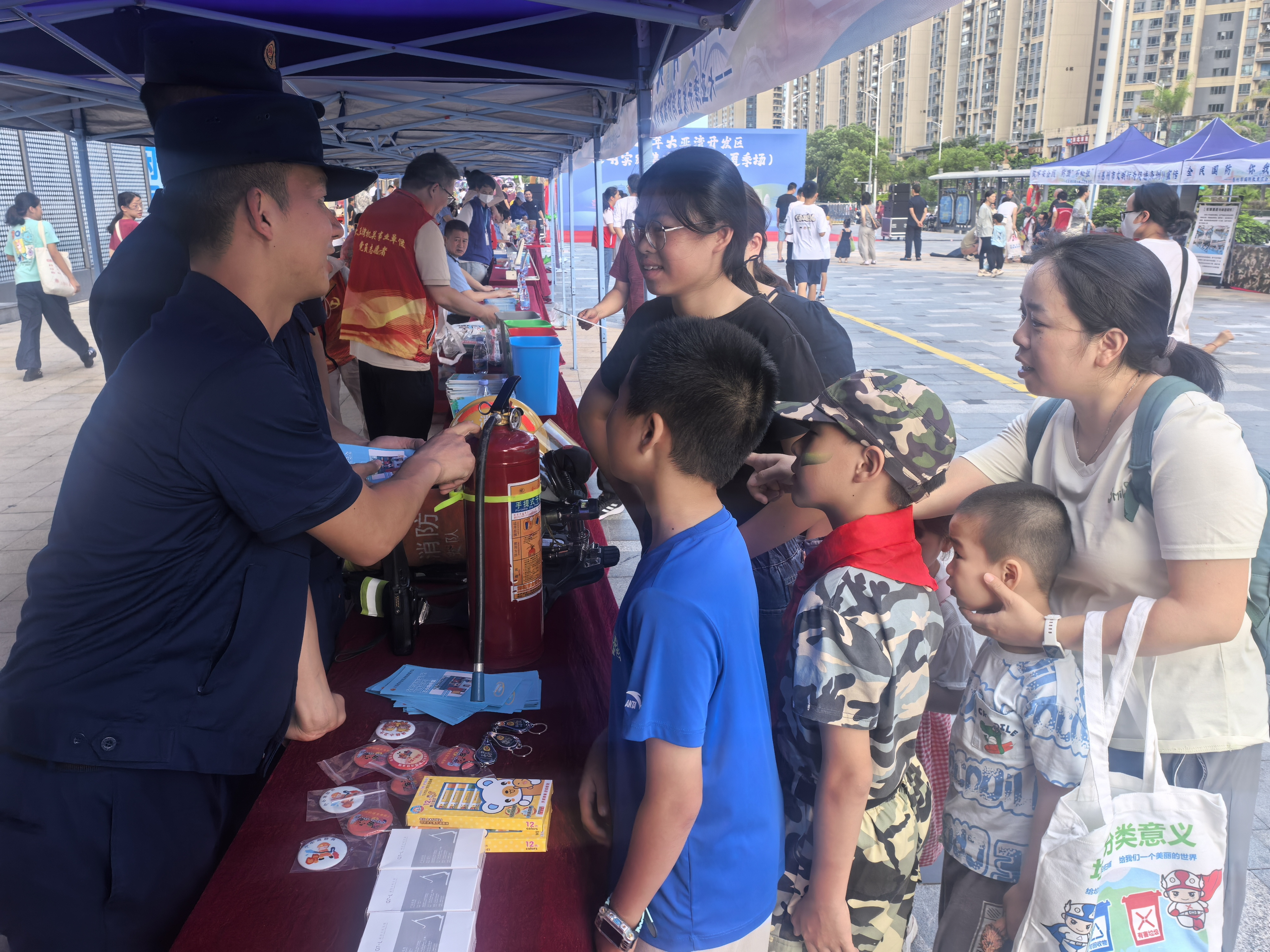 在健康關(guān)愛專區(qū),心理咨詢師耐心為青少年解疑答惑,義診臺(tái)前排起了長龍。安全守護(hù)專區(qū)更是亮點(diǎn)紛呈:惠州海關(guān)人員借助實(shí)物講解國門生物安全知識(shí),消防員手把手教授滅火器使用技巧,反詐民警則用真實(shí)案例揭秘新型詐騙手段,急救專業(yè)志愿者教市民學(xué)習(xí)心肺復(fù)蘇等急救知識(shí),義診義剪真誠服務(wù)群眾……針對(duì)夏季高發(fā)安全問題,活動(dòng)特別設(shè)置了防溺水科普展板和高溫急救演示,吸引眾多市民駐足學(xué)習(xí)。