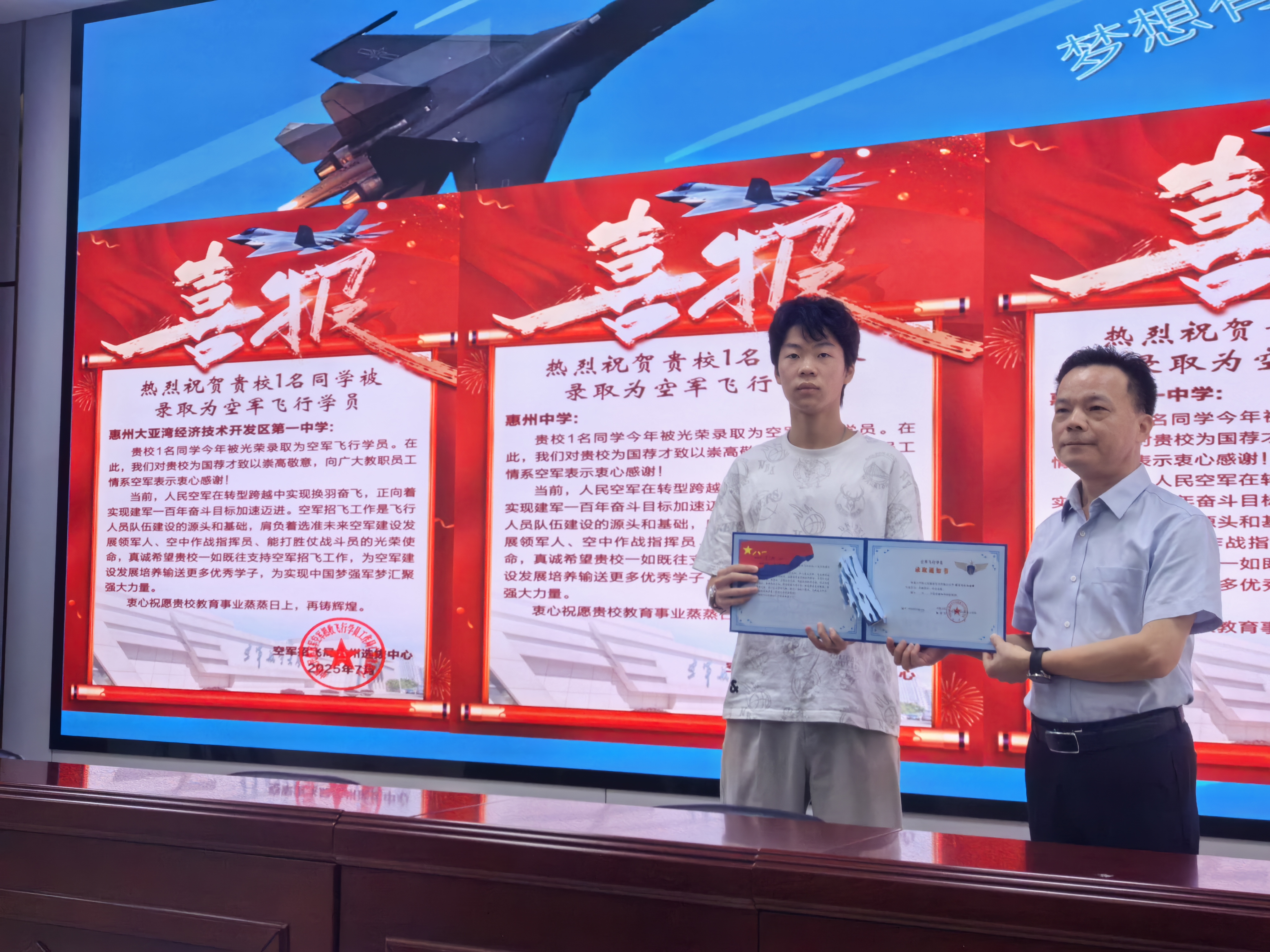 惠州日報訊 (記者黃旭新 通訊員張璇)胸懷凌云志,載夢赴藍天。近日,空軍招飛局廣州選拔中心向大亞灣第一中學發(fā)來喜報:憑借優(yōu)異的高考成績、過硬的身體條件和良好的心理素質(zhì),并通過嚴格的選拔與政治審核,該校2025屆高三學子肖子揚被錄取為空軍飛行學員。這也是該校首位通過空軍招飛錄取的學員。