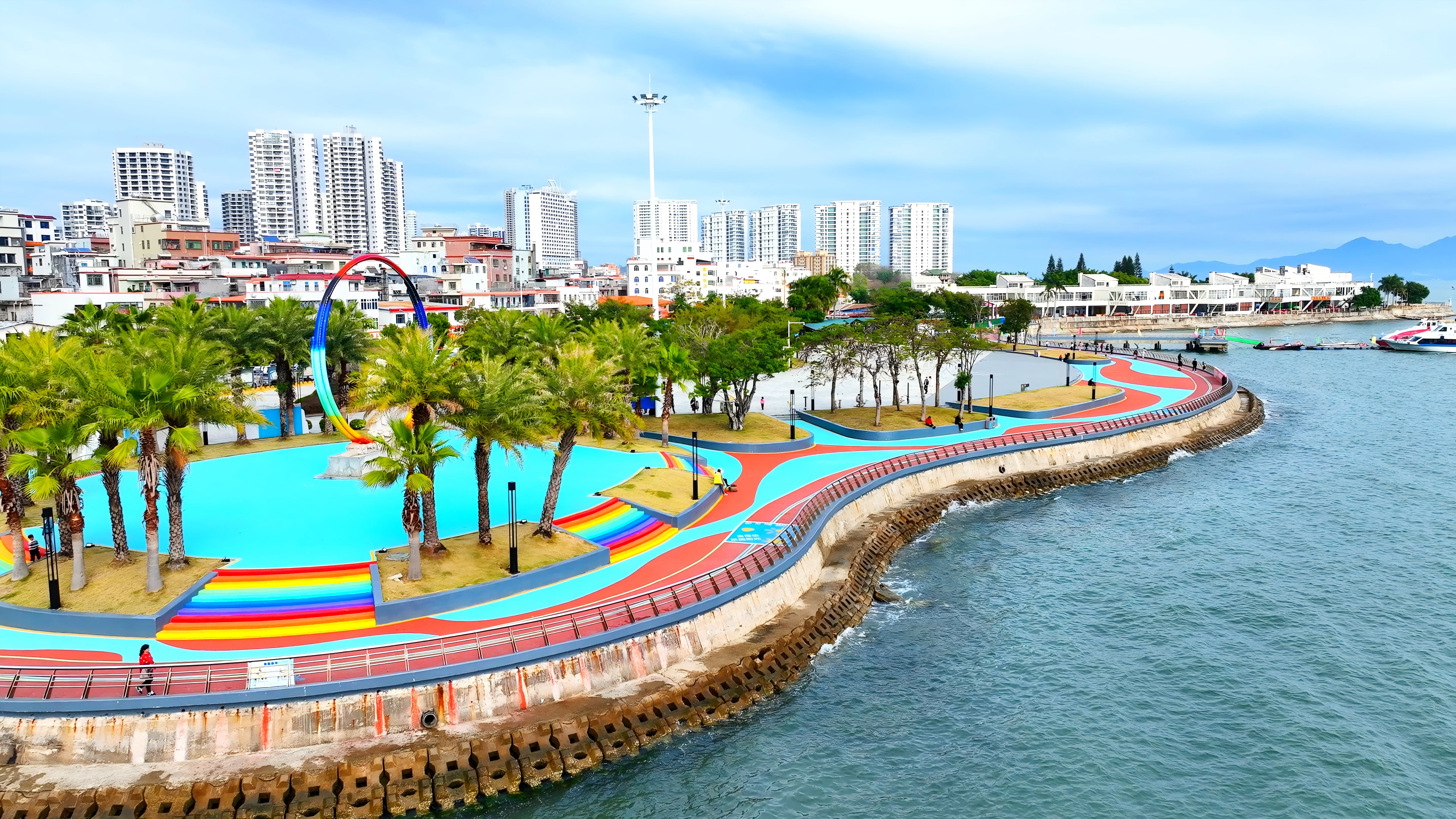 海韻廣場往東是連心橋,橋下的包禾塘是入?凇0烫烈员笔切麓宕,以南是霞新村。2023年,新村村入選省“百千萬工程”首批典型村。霞涌街道以“景秀漁港 霞韻新村”為主題,將新村村和霞新村一起作為漁村振興試點進(jìn)行整體規(guī)劃設(shè)計打造。其中包禾塘片區(qū)將加快房屋外立面改造,引進(jìn)社會資本加入打造酒吧街、商業(yè)街,配套內(nèi)灣碼頭、彩虹橋、親水棧道等商業(yè)及休閑設(shè)施,帶動霞涌夜間旅游經(jīng)濟(jì)。如今,包禾塘片區(qū)經(jīng)過人居環(huán)境改造后,濱河?xùn)|側(cè)的居民房已換上嶄新外衣,變身“彩虹屋”,成為網(wǎng)紅打卡點。包禾塘片區(qū)旁邊便是螺島,這里將利用天然的礁石和濱海資源打造成海洋觀光體驗文化公園。