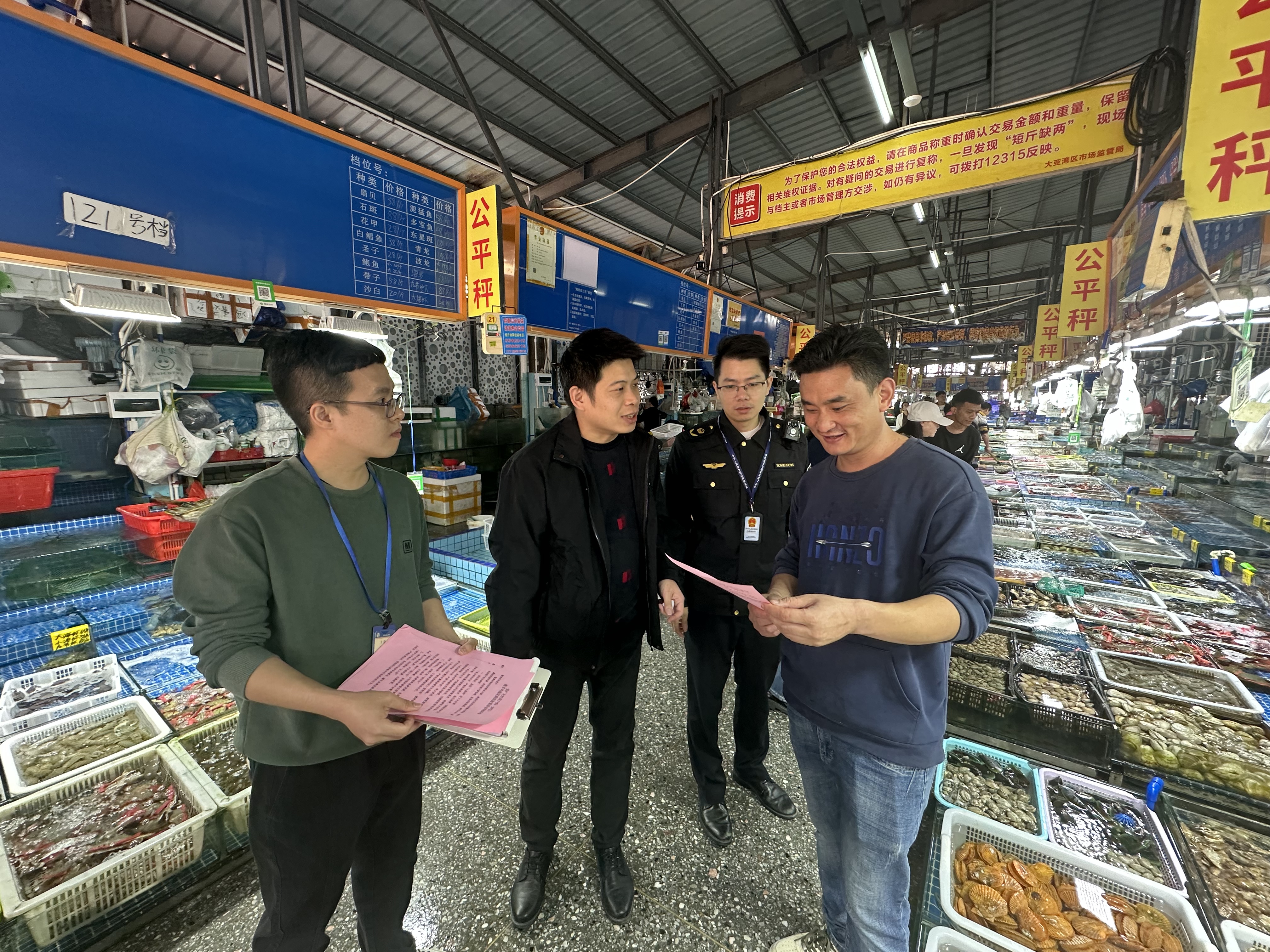 執(zhí)法人員檢查海鮮市場;葜萑請笥浾呖锵娑 攝