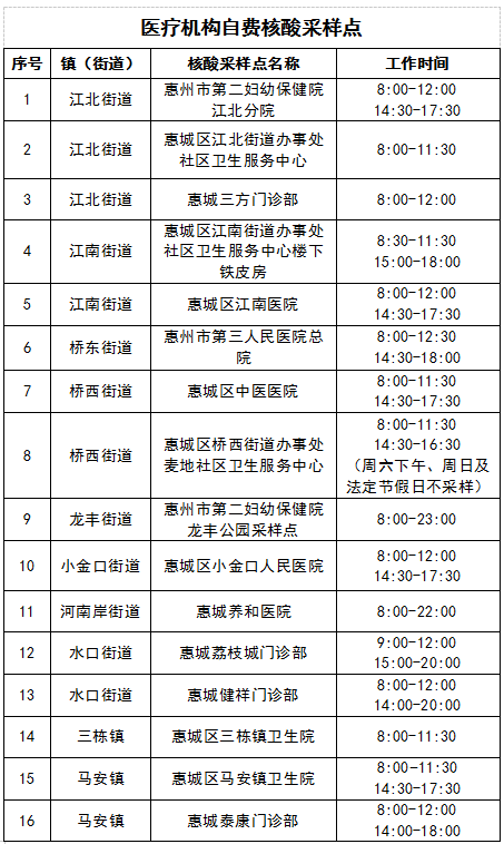 2022年12月27日-2023年1月3日惠城區(qū)核酸采樣點(diǎn)公告