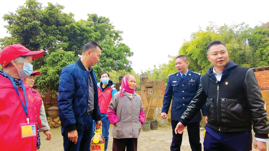 工作隊員入戶慰問,給老人送上新春祝福。