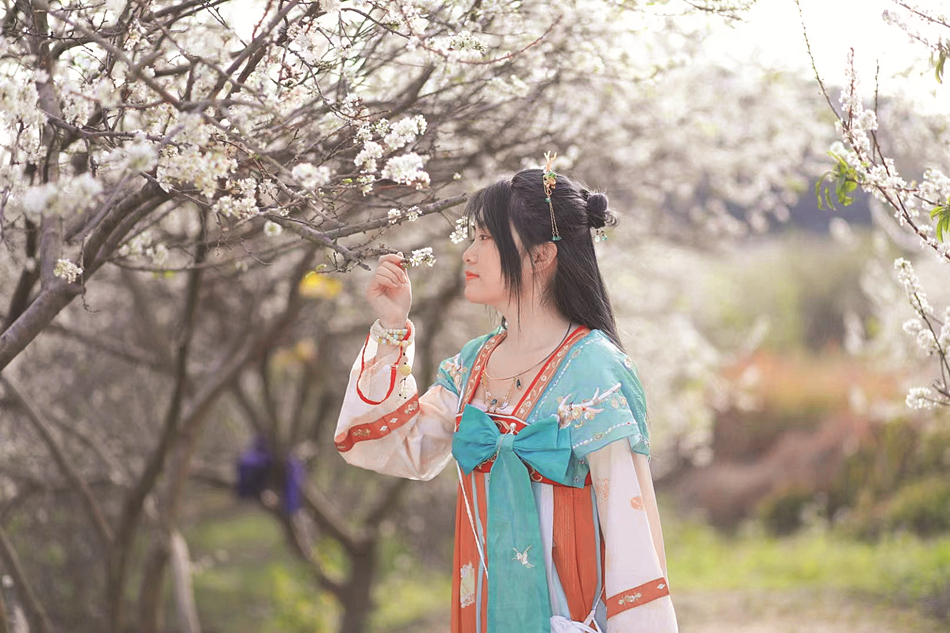 一團(tuán)團(tuán)一簇簇的李花隨風(fēng)搖曳,淡淡的清香縈繞鼻尖,令人沉醉。李子園里,漢服愛(ài)好者們?cè)诶顦?shù)下賞花,騎行愛(ài)好者在李樹(shù)下穿行,還有不少市民和攝影愛(ài)好者拍照留影,各得其樂(lè),盡享美好春光。