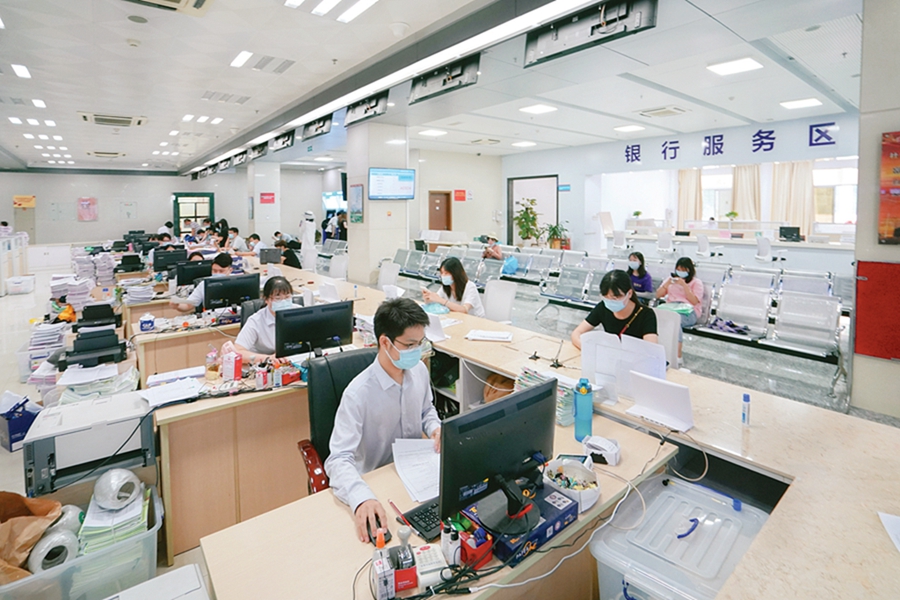 惠城區(qū)行政服務(wù)中心的辦事大廳,工作人員為市民辦理業(yè)務(wù);葜輺|江圖片社供圖