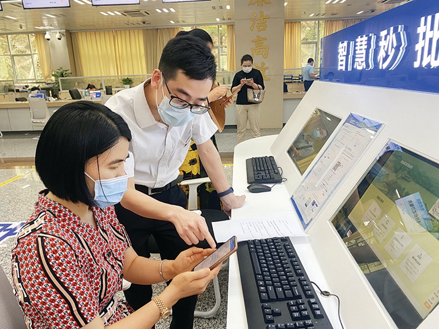 市民利用“智慧秒批”辦理商事登記業(yè)務(wù)。