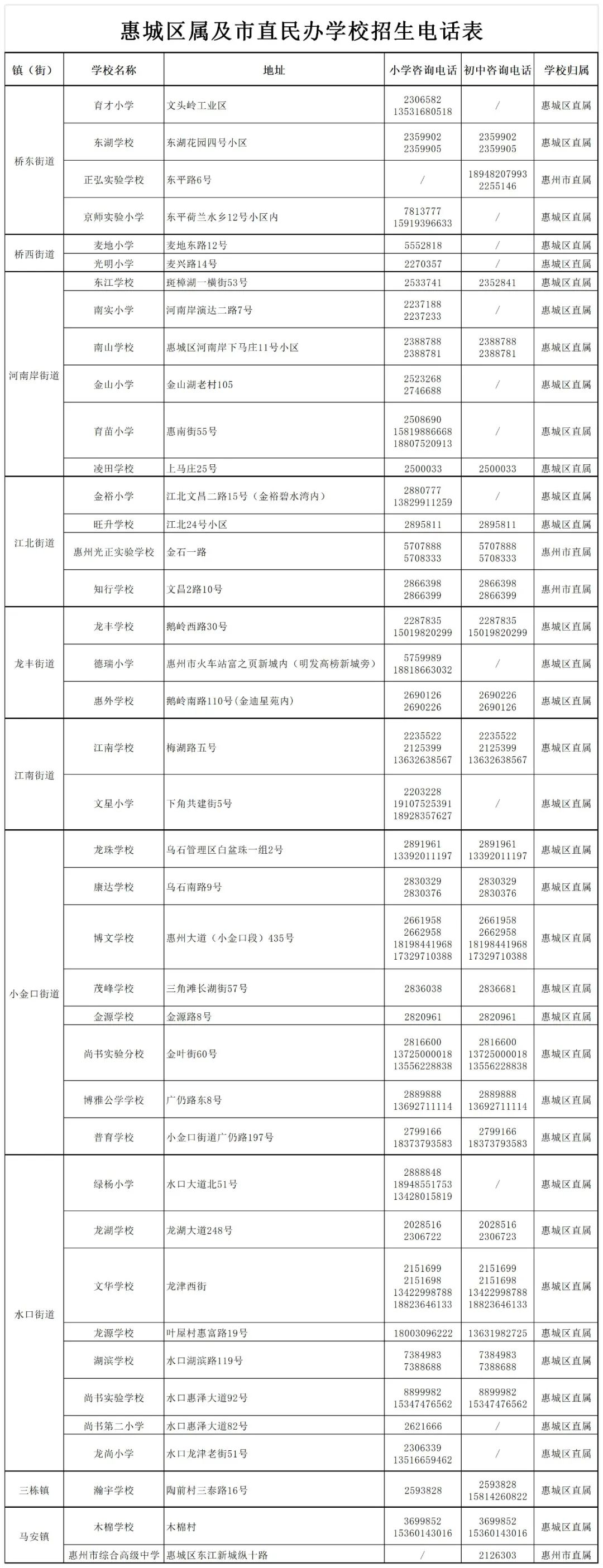 附件:惠城區(qū)屬及市直民辦學(xué)校招生電話表