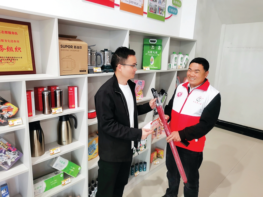 東湖社區(qū)“積分銀行”為志愿者服務加油。