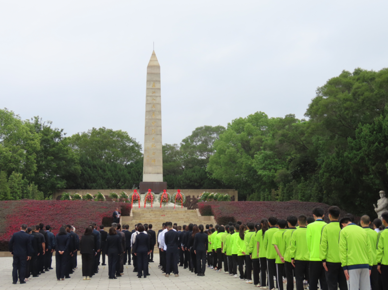 在莊嚴(yán)肅穆的東江人民革命烈士紀(jì)念碑前,全體人員整齊列隊(duì),靜默肅立。集體奏唱國歌,瞻仰烈士墓碑。與會領(lǐng)導(dǎo)在紀(jì)念碑前駐足凝視,仔細(xì)整理緞帶,表達(dá)深切的懷念和崇高的敬意。全體人員默哀致禮,向紀(jì)念碑三鞠躬后,依次敬獻(xiàn)鮮花并緩步繞行瞻仰革命烈士紀(jì)念碑,悼念為革命事業(yè)獻(xiàn)出寶貴生命的英烈,深切緬懷英烈們的不朽功績。