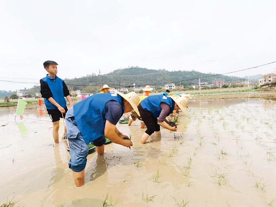 其中,插秧比賽最具鄉(xiāng)村特色。在開闊的田間,參賽選手以家庭為單位,三人一組擼起袖子努力插秧。其中有耕種數(shù)10年的老農(nóng)民,也有沒下過田的孩子,在親子的互動中,大家共同體驗農(nóng)耕的樂趣!靶『膩頉]有插過秧,讓她體驗一下生活。”村民劉惠權(quán)表示,運動會不僅有趣,還拉近了村民之間的距離。