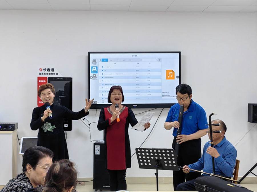 “長(zhǎng)者之家好。∥覀冃枰裁纯禈(lè)活動(dòng),這里就舉辦什么,是貼心的‘菜單式’服務(wù)!毙^(qū)居民溫愛(ài)棠今年70歲,是小區(qū)有名的“歌王”,能拉二胡愛(ài)好唱歌的他,召集了一幫志同道合的老伙伴一起,開(kāi)展“K歌晨會(huì)”、唱歌教學(xué)活動(dòng),老有所樂(lè)、其樂(lè)融融,還吸引了不少其他小區(qū)的老人加入其中。