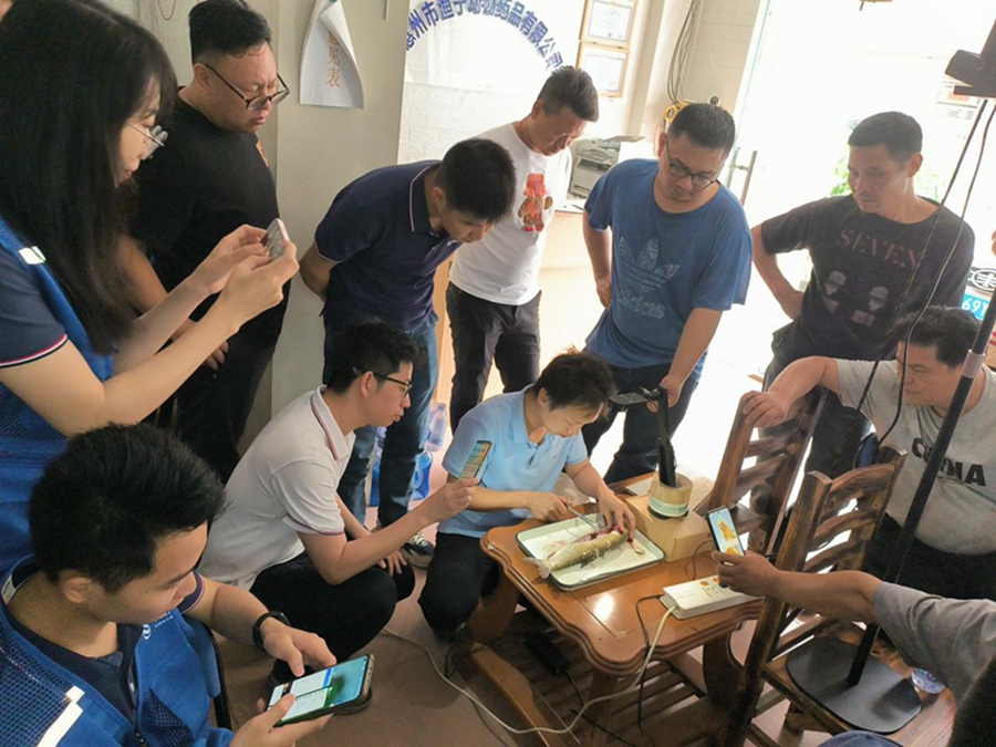 授課老師圍繞水產(chǎn)健康養(yǎng)殖、水質(zhì)調(diào)控、魚病防治技術(shù)等進(jìn)行課堂教學(xué)。老師還現(xiàn)場進(jìn)行魚類解剖教學(xué),教學(xué)員如何辨別魚病,并對大家提出的疑難問題現(xiàn)場“開處方”“送良藥”。