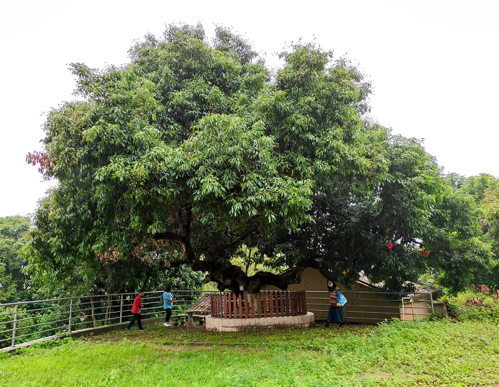 在歷代村民的呵護珍視下,這棵古荔枝樹至今仍枝繁葉茂,每年開花結(jié)果。因為這棵古樹的“坐鎮(zhèn)”,也常有游客到大陵崗尋幽訪古,叩問古荔枝故事,或樹下乘涼,遐想萬千。