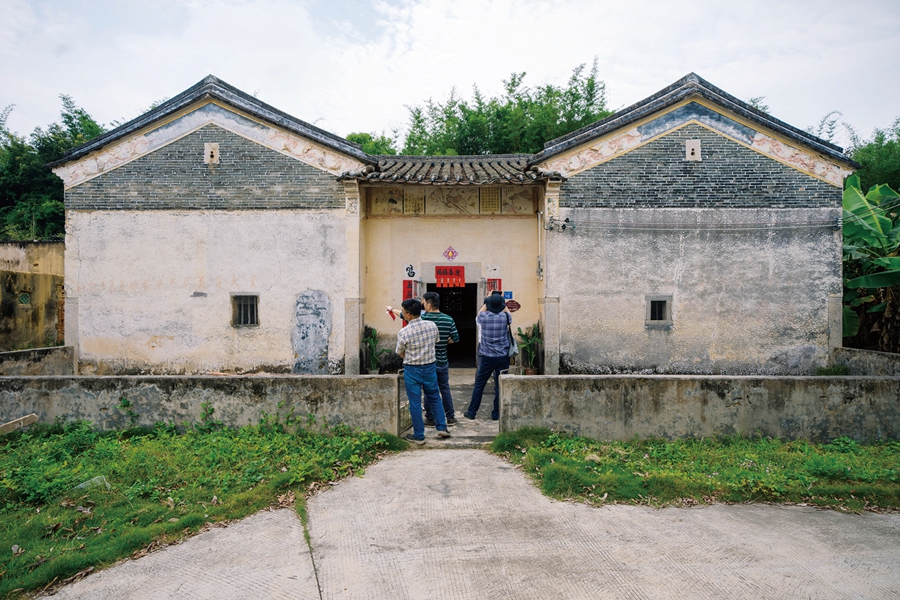 塘房老圍屋旁,有一間清代民居,是曾冠猷兒子曾輝元的居所,占地約200平方米,單家獨(dú)戶,精美別致。曾輝元的生平事跡已經(jīng)很難追溯,但他留下的這座建筑,卻無(wú)異于生命史書(shū)。曾輝元繼承家業(yè),靠著經(jīng)營(yíng)糖業(yè)、榨油等生意,延續(xù)父輩的輝煌。清光緒二十七年(1901),曾輝元斥資建造了這棟別業(yè)。從外觀看,這座建筑與三棟一帶的清代民居無(wú)異,主要材料是灰沙、青磚、灰瓦,局部使用麻石、木料,但它的保存狀況良好,外觀給人歷久彌新的感覺(jué)。這座老宅大量使用灰塑、壁畫(huà)、木雕、書(shū)刻等裝飾,寄寓房屋主人的閑情逸致和情操追求。門(mén)楣上的壁畫(huà)栩栩如生,殘存的陶塑、灰塑,又給人一種殘缺的美感,讓人想見(jiàn)當(dāng)日完好的細(xì)膩。老宅內(nèi)的客廳與書(shū)房,一是公共空間,一是私密空間,均對(duì)著天井,不論是獨(dú)坐書(shū)房還是在客廳與客人茶敘,均能抬頭望見(jiàn)藍(lán)天和綠樹(shù),身居幽室卻不舍自然,體現(xiàn)著中國(guó)古人特別是富裕階層普遍的居家審美。
