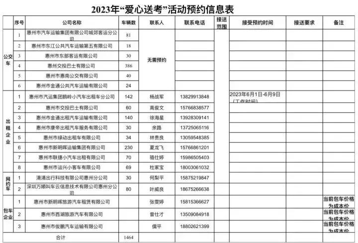 一年一度的高考即將來臨,為了讓廣大考生能夠安全、快捷、準時抵達考場,以良好的心理素質(zhì)和沉著冷靜的狀態(tài)應對考試!惠州市交通運輸局惠城區(qū)分局同惠城區(qū)各交通運輸企業(yè)共同舉辦2023年“愛心送考”公益活動,全區(qū)近1500輛公交車、出租車(含網(wǎng)約車)將全力為考生保駕護航!
