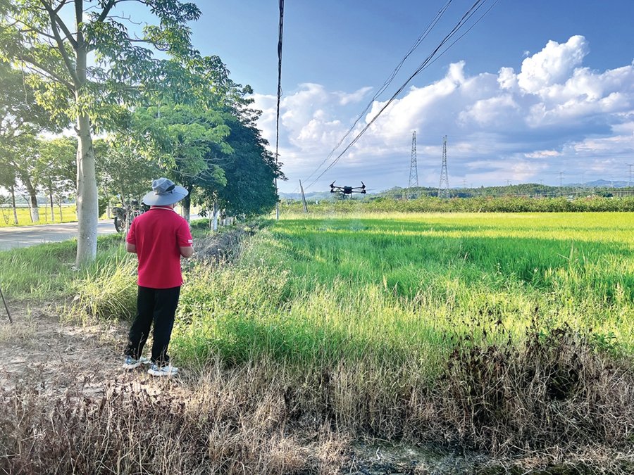 “我種了13畝水稻,手工打藥要一天,無(wú)人機(jī)半個(gè)多小時(shí)就完成了!贝迕窈(jiǎn)秀英為科技助農(nóng)的效果點(diǎn)贊。