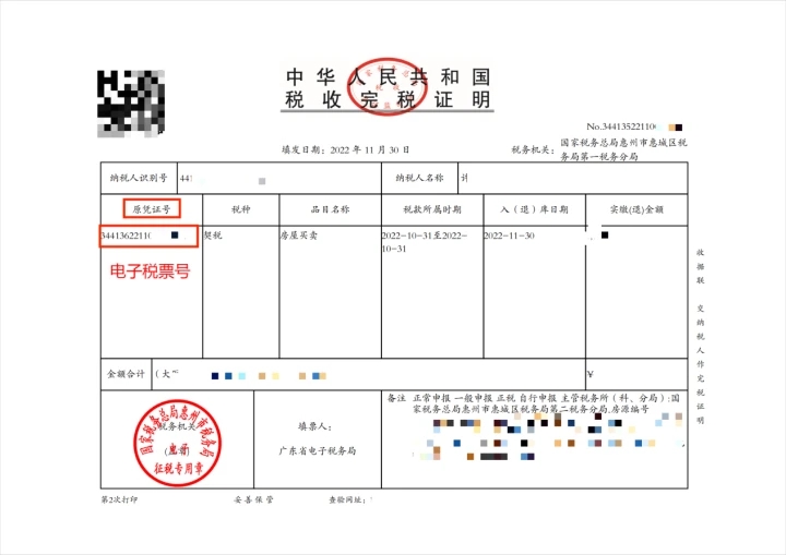 契稅原憑證號(hào)如下圖紅框所示: