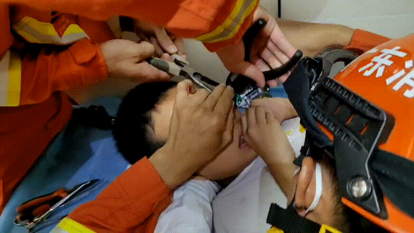 對(duì)電動(dòng)指甲刀外殼拆除后,消防員發(fā)現(xiàn)小男孩的上眼瞼皮膚組織已經(jīng)被卷入齒輪中牢牢絞住,強(qiáng)行拆除極有可能造成二次傷害,即使打了麻醉,一碰指甲刀小男孩也會(huì)疼痛難忍,無(wú)法配合。最后消防員、醫(yī)護(hù)人員與家屬溝通后決定進(jìn)行切除被絞住的部分眼瞼。經(jīng)過(guò)緊急處置,消防員成功將電動(dòng)指甲刀與小男孩的眼瞼分離,隨后交由醫(yī)護(hù)人員進(jìn)行下一步治療。