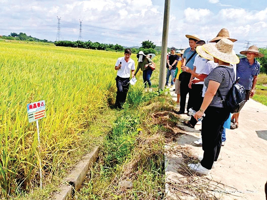 當(dāng)看到品質(zhì)優(yōu)、抗性好、產(chǎn)量高的水稻品種——南晶香占,種植大戶簡(jiǎn)秀英像挖到了寶,馬上向農(nóng)技人員索要品種名稱,表示自己有十幾畝地,下半年將大面積種植這個(gè)優(yōu)良品種。