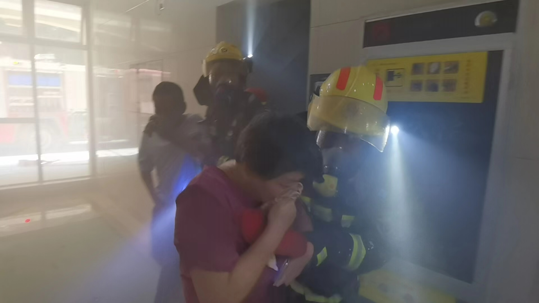 經(jīng)偵查,著火點為901房主臥,902房有兩人被困,惠城區(qū)東平消防救援站立即組織六人內(nèi)攻小組進行搜救。約5分鐘后,成功將兩名被困人員救出,并立即移交120進行救治。