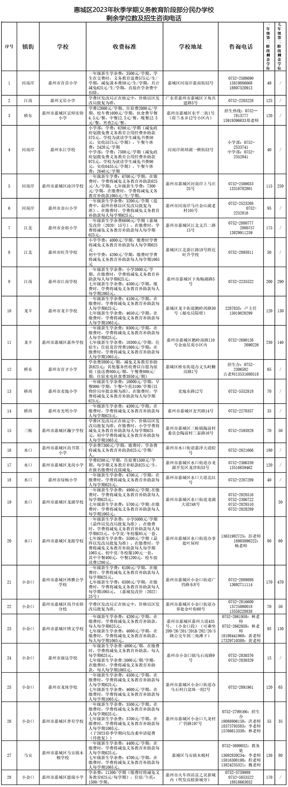《惠城區(qū)2023年秋季學(xué)期部分民辦學(xué)校起始年級第二階段招生公告》,