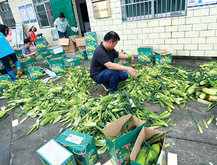 南新村將壯大甜玉米產(chǎn)業(yè),圖為村民在打包甜玉米。