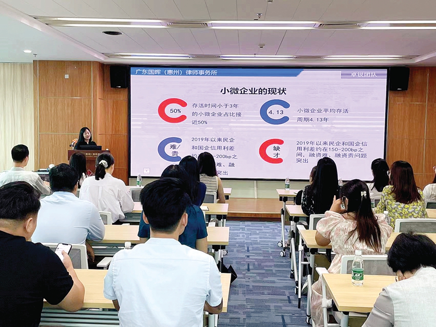 惠州日?qǐng)?bào)訊 (記者彭紅霞 通訊員陳晨芳)日前,有企業(yè)向江北街道CBD樓宇企業(yè)服務(wù)站提出,經(jīng)營(yíng)過(guò)程中遇到一些法律問(wèn)題需要咨詢。針對(duì)企業(yè)的需求,服務(wù)站工作人員通過(guò)走訪調(diào)研、分析研判,聯(lián)系有相關(guān)需求的企業(yè)30余家,特邀廣東國(guó)暉(惠州)律師事務(wù)所專職律師為大家答疑解惑。9月8日上午,一場(chǎng)以“小微企業(yè)如何避免常見法律糾紛”為主題的法律知識(shí)講座在華貿(mào)大廈舉行。