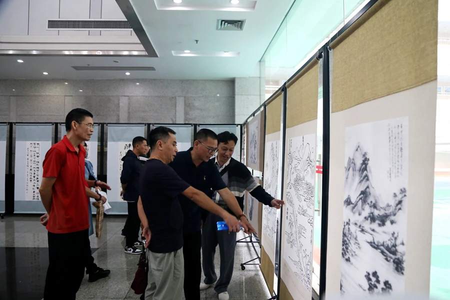 “詩書畫里品惠城”展覽吸引眾多觀展者。 惠州日報記者鄧惠婷 特約通訊員周文媚 攝