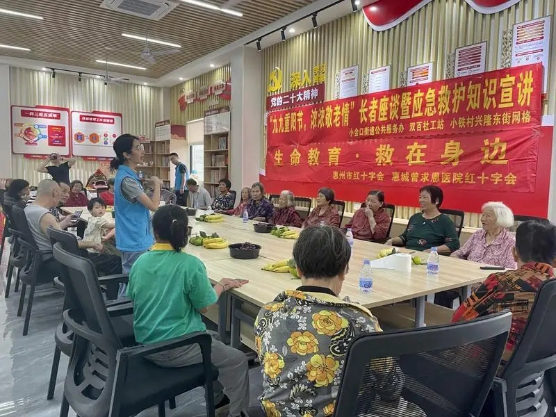為進(jìn)一步弘揚(yáng)中華民族敬老、愛(ài)老、助老的傳統(tǒng)美德,讓社區(qū)老人度過(guò)一個(gè)歡樂(lè)、祥和、健康、文明的老年節(jié),10月20日上午,惠城區(qū)小金口街道社會(huì)工作服務(wù)站聯(lián)合小鐵村興隆東街網(wǎng)格黨群服務(wù)站、惠城曾求恩醫(yī)院紅十字會(huì)志愿服務(wù)隊(duì),開展“九九重陽(yáng)節(jié),濃濃敬老情”長(zhǎng)者座談暨應(yīng)急救護(hù)知識(shí)宣講活動(dòng)。