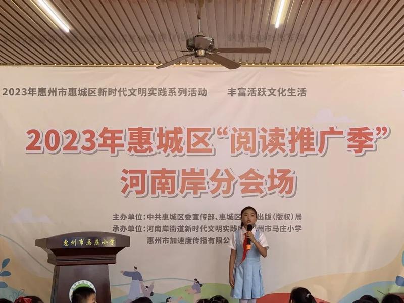 惠州日報訊 (記者葉文青 通訊員黃燕妮)為倡導(dǎo)全民閱讀,營造全社會愛讀書、讀好書、善讀書的濃厚氛圍,日前,2023年惠城區(qū)“閱讀推廣季”河南岸分會場活動在河南岸馬莊小學(xué)舉行。此次活動由惠城區(qū)委宣傳部、區(qū)新聞出版局(區(qū)版權(quán)局)主辦,河南岸街道辦承辦。