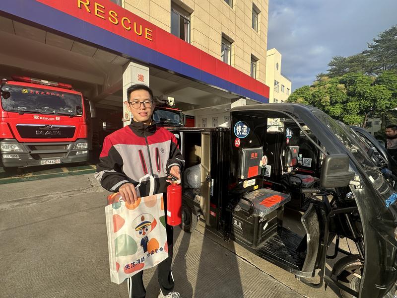11月是全國消防宣傳月。為全面落實(shí)“119”全國消防宣傳月期間消防安全教育“進(jìn)家庭”工作,進(jìn)一步提高群眾消防安全意識(shí),增強(qiáng)群眾防火自救能力,惠城區(qū)消防救援大隊(duì)搭乘順豐快遞“順風(fēng)車”,助力消防宣傳,讓每臺(tái)快遞車和每個(gè)快遞包裹都成為消防宣傳小喇叭!翱爝f盒將貼上消防宣傳貼紙,將快遞包裝化身成消防宣傳禮包,送進(jìn)千家萬戶!被莩菂^(qū)消防救援大隊(duì)大隊(duì)長戎曉冬告訴記者,惠城區(qū)消防救援大隊(duì)還為部分快遞小哥配備了滅火器,為市民的包裹保駕護(hù)航。
