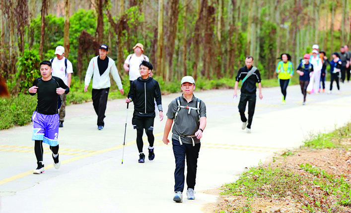 徒步愛(ài)好者暢游汝湖鄉(xiāng)村。 本組圖片 惠州日?qǐng)?bào)記者彭紅霞 特約通訊員邱思瑜 通訊員蔡逸思 攝