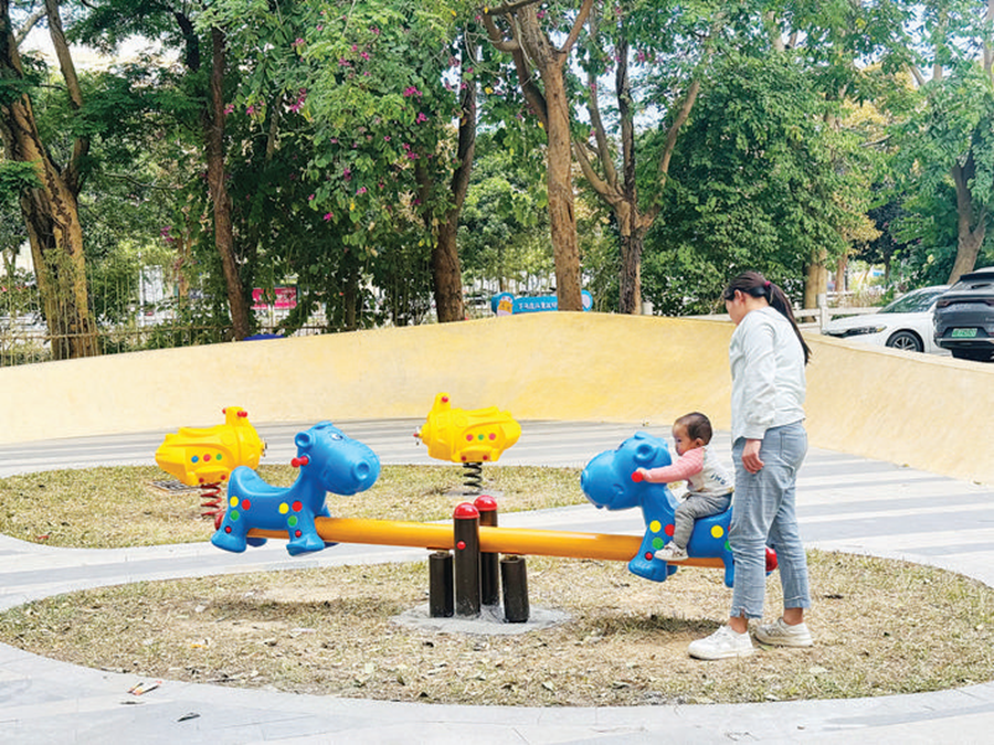 河南岸馬莊村兒童友好公園位于金山河畔,之前雜草叢生、蚊蟲滋生、落葉堆積。借著馬莊村精品村改造建設(shè)的契機(jī),該公園于2022年12月動(dòng)工建設(shè),如今這里干凈整潔,還有兒童滑梯、秋千、蹺蹺板等游樂設(shè)施,成為小朋友們休閑娛樂的好去處。