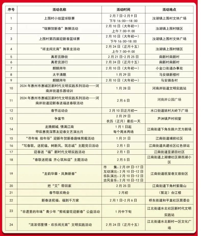 下面是2024年惠城春節(jié)期間